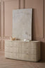 A celebration of material and purity in form, the Simply Perfect dresser makes an understated yet alluring statement. Wrapped in an ivory-painted, pieced faux shagreen, its classic silhouette introduces subtle texture and a note of luxe to bedroom interiors. Style alongside our Simply Perfect nightstand, or as a sophisticated piece on its own. FEATURES: Case is wrapped in pieced Ivory Painted Faux Shagreen. Six drawers with soft close undermount guides. Plinth base finished in Ivory.