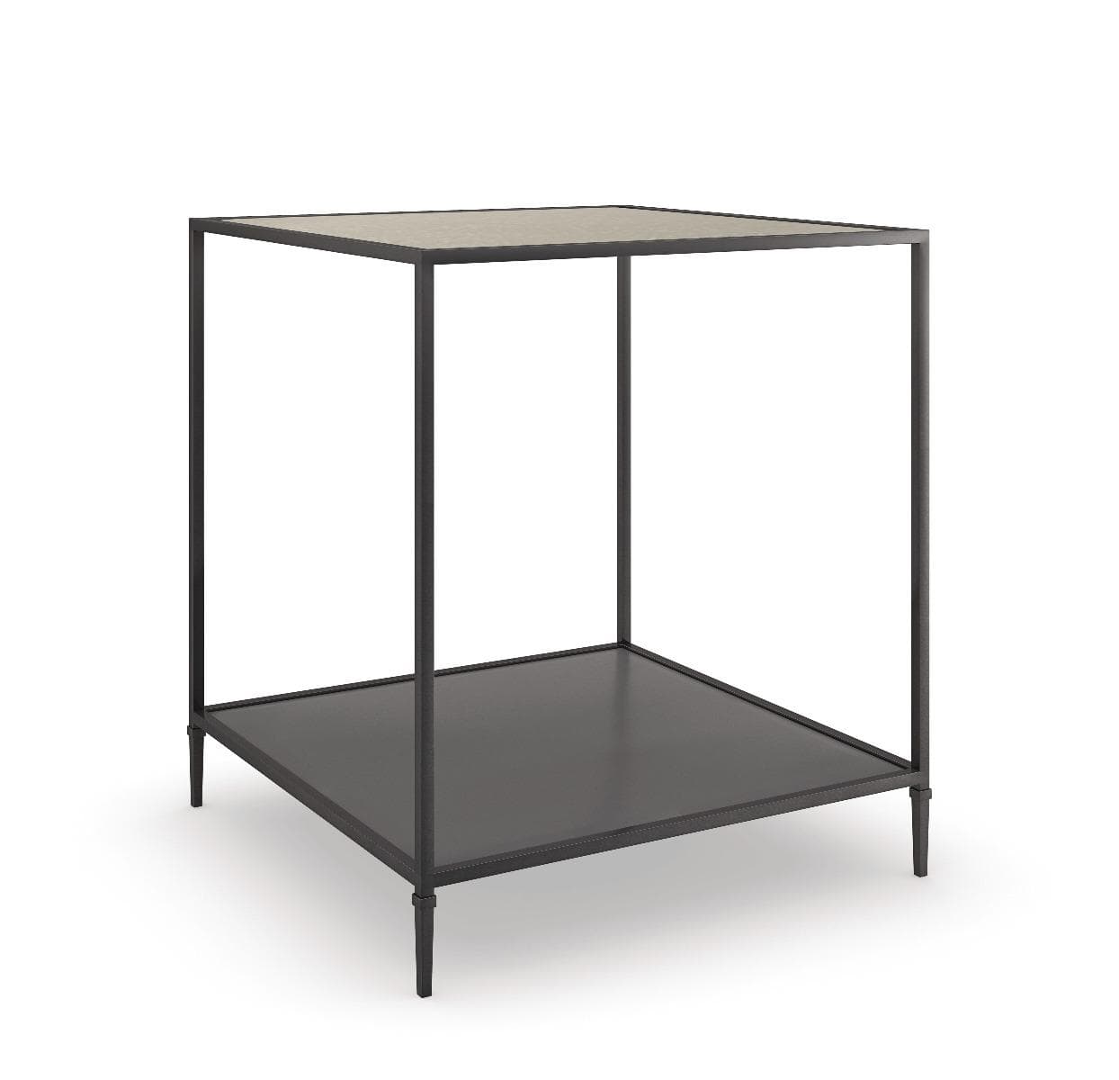 An essential end table with a classic square shape and an antique mirrored top for added depth and reflection. Its delicate yet durable design features a Brushed Deep Bronze metal frame with tall tapered legs and Warm Slate wood shelves for open storage and display. Elegant in its simplicity and moody mix of materials, it introduces a timeless style with endless potential. Antique mirrored top with 1" bevel. Metal frame in Brushed Deep Bronze. Wood shelf finished in Warm Slate. CARACOLE FURNITURE Caracole furniture is inspired and sophisticated, offering an edited range of distinctive styles to set the stage for elegant modern living. Filled with personality, each piece is a breath of fresh air, elevating interiors with timeless fashion and modern details. From minimalist simplicity for contemporary spaces to signature styles inspired by classic design, Caracole is the epitome of modern luxury. These timeless looks are always on trend, bringing together superior craftsmanship and incredible style to re-imagine interior spaces with expression and creativity.