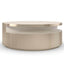 A lazy Susan-style base allows this cocktail table to rotate, for a striking view at every turn. Cylindrical in shape, this luxe centrepiece mixes the beauty of Caracole Crème stone with a soft gold tone, and an inset storage shelf for showcasing art and fashion books. Designed to rotate a full 360-degrees, it's the perfect addition to spaces that welcome entertaining. Metal frame in Whisper of Gold. CrËme stone Top. Interior in Wedding Dress White. Swivel base.