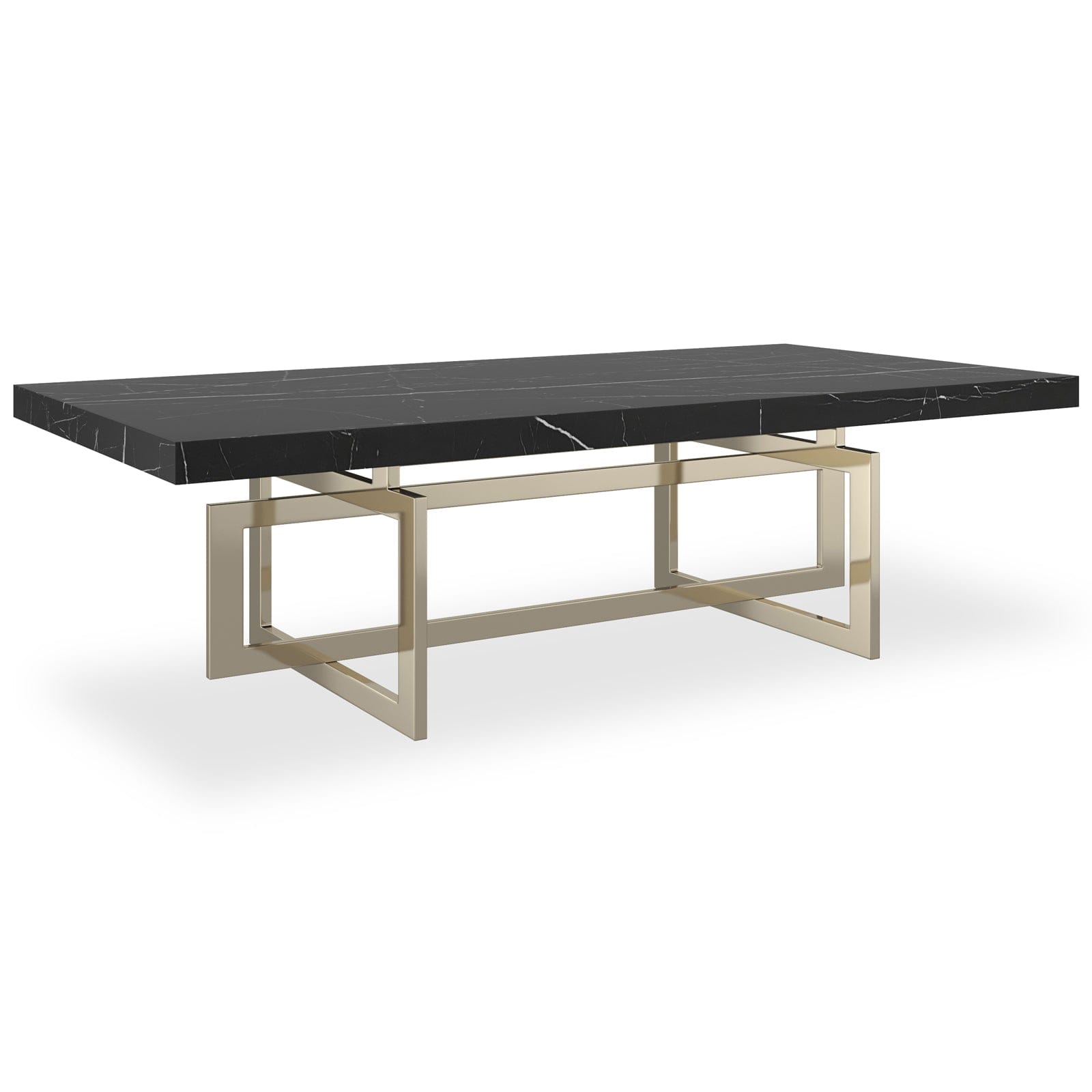 Caracole Wish You Were Here Coffee Table in Dark - RectangularA striking centerpiece, the Wish You Were Here Rectangle Cocktail Table Dark features a luxurious Black marble top resting elegantly on a base finished in Whisper of Gold. This cocktail table elevates any living space with its sophisticated and timeless appeal.Black marble top.Base in Whisper of Gold.Caracole ClassicTaking the classics of furniture design and pairing with unique materials and refined finishes, this portfolio was born of our vision to create high-style furniture with a personality of elegance and individuality. Bring a breath of fresh air to interiors with distinctive pieces for every room of the home, while blurring the lines between classical styling and modern taste. These playfully named pieces address whole room environments through an eclectic lifestyle approach, instilling a scheme with versatile furniture that are sophisticated, creative and classy in equal measure.CARACOLE FURNITURECaracole furniture is inspired and sophisticated, offering an edited range of distinctive styles to set the stage for elegant modern living. Filled with personality, each piece is a breath of fresh air, elevating interiors with timeless fashion and modern details. From minimalist simplicity for contemporary spaces to signature styles inspired by classic design, Caracole is the epitome of modern luxury. These timeless looks are always on trend, bringing together superior craftsmanship and incredible style to re-imagine interior spaces with expression and creativity.