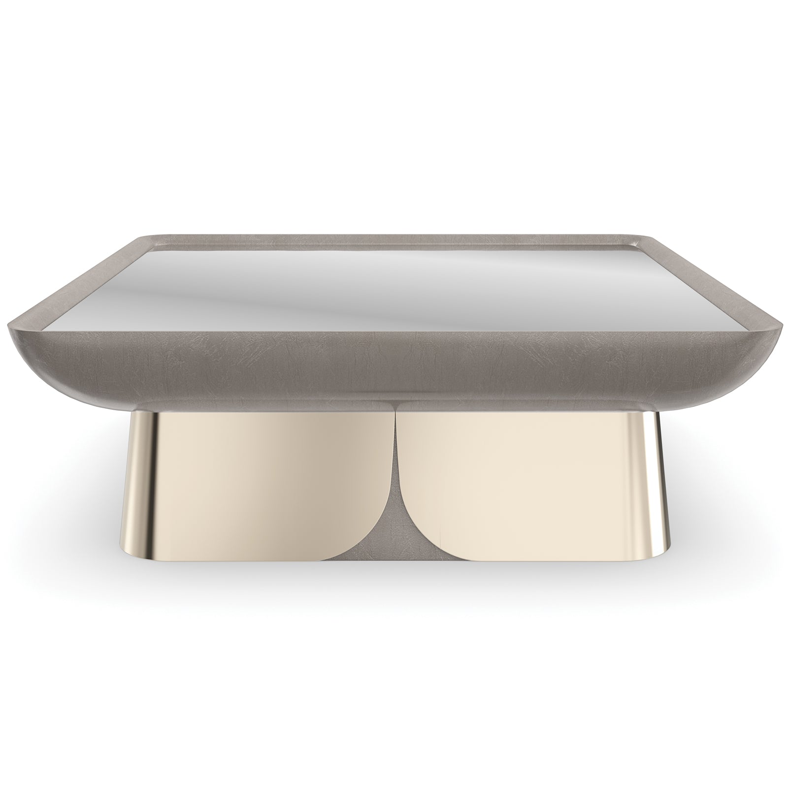 Zenith Coffee TableAt the pinnacle of form and function, this reflective cocktail table takes inspiration from the arcing paths traveled by celestial bodies. Dazzling the eye and playing up light: a shimmering mix of mirror with polished gold metal and a Charcoal Leaf finish. Style with our softly curved Clipper sectional and Zenith end tables for a glamorous yet elegant aesthetic.FEATURES:Clear mirror top.Top frame in Charcoal leaf,Metal base in Whisper of Gold with wood panels in Charcoal Leaf.Caracole ClassicTaking the classics of furniture design and pairing with unique materials and refined finishes, this portfolio was born of our vision to create high-style furniture with a personality of elegance and individuality. Bring a breath of fresh air to interiors with distinctive pieces for every room of the home, while blurring the lines between classical styling and modern taste. These playfully named pieces address whole room environments through an eclectic lifestyle approach, instilling a scheme with versatile furniture that are sophisticated, creative and classy in equal measure.