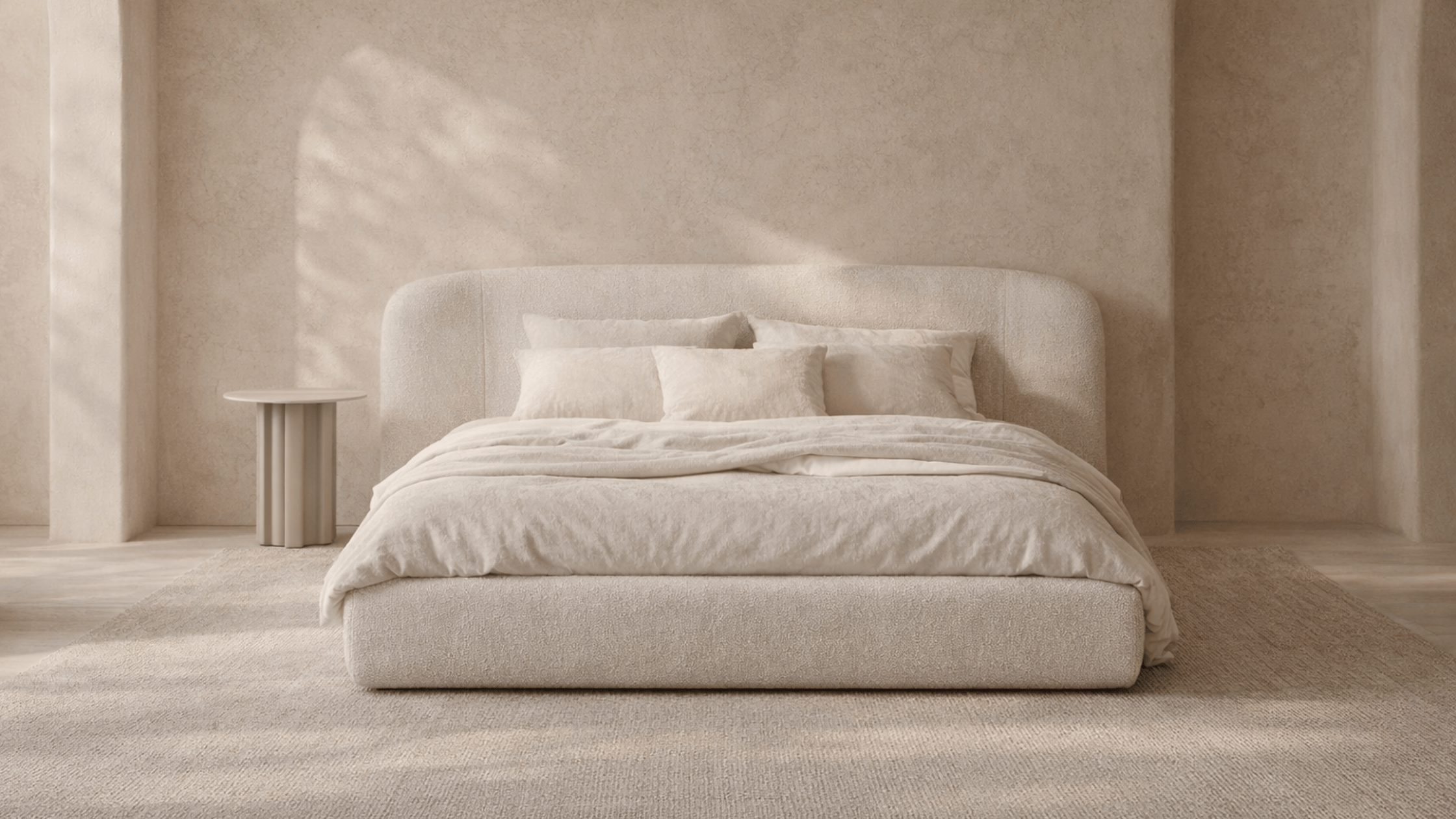 The Coria Double Bed is an elegant expression of comfort and softness, designed to create a calming, cloud-like presence in the bedroom. Fully upholstered in a beautiful oatmeal-toned fabric, its gentle beige hue brings warmth and understated sophistication to both modern and timeless interiors. The curved, padded headboard enhances the bed’s inviting aesthetic, wrapping the space in a sense of softness and serenity.