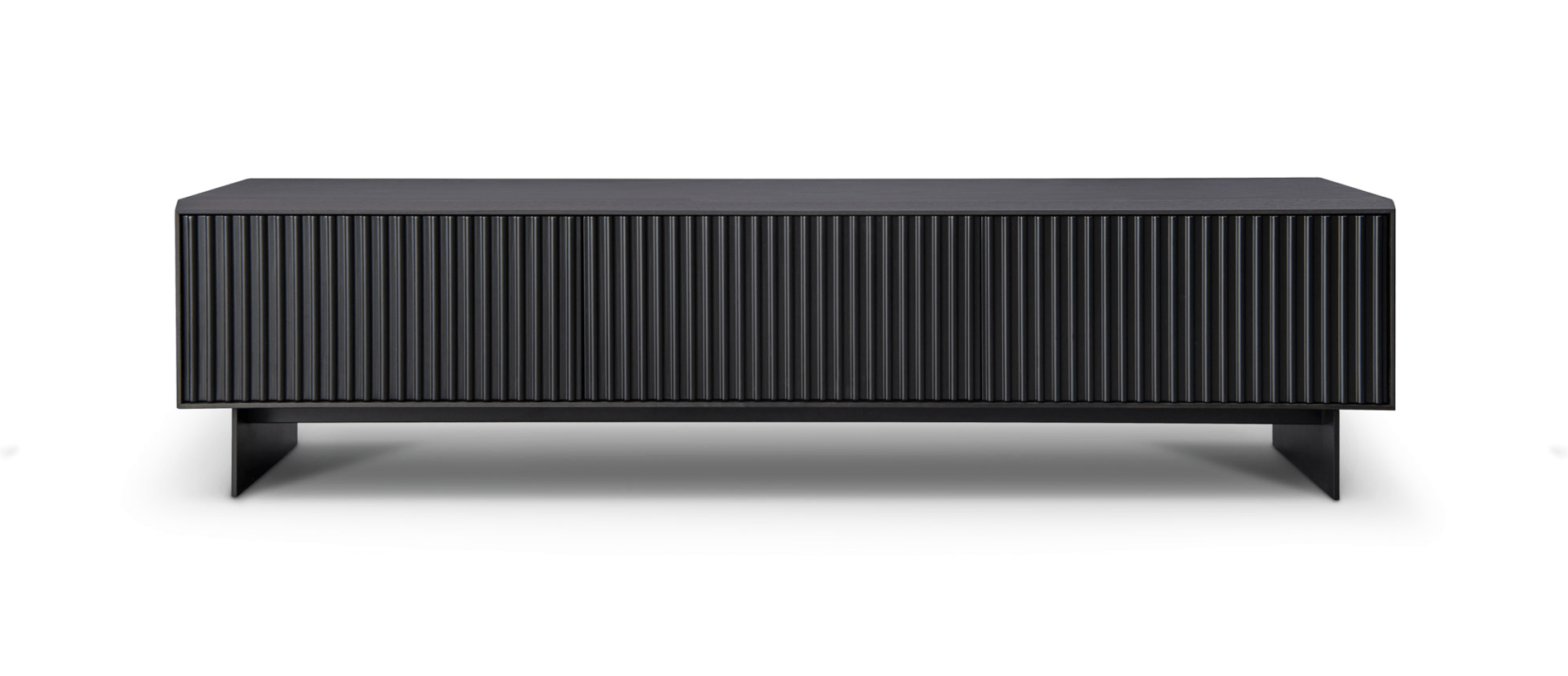 The Costine TV Unit is a chic and elegant piece that draws attention with its distinctive ribbed front detail. Its refined design is enhanced by a smoke oak veneer finish on the outer, and the matte black lacquered legs and doors, exuding a sense of sophistication. With a generous length of 2 meters, this unit not only accommodates your entertainment needs but also provides ample storage space. The Costine TV Unit stands as a tasteful addition to any living space, seamlessly combining aesthetics and functionality to create a statement piece that enriches the overall ambiance.