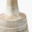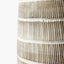 A beautifully tall and elegant wooden table lamp base with scandi styling and tactile finish. The lamp base, made in India, is in a subtle white wash with a hand crafted etched design. Finished with a a beautifully rustic, open weave jute linen cylinder lamp shade this table lamp will look fabulous in any room within your home.