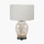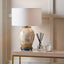 The iconic Jenny Worrall brand boasts a range of truly exquisite table lamp designs. Created using the traditional technique of potichomania, delicate decals are applied by hand within the base of the lamp. Each lamp design is then carefully built up with layers of hand-sponged lustre and colour to create the finished effect. The Deer design is pictured on a cream champagne colour background using a rich brown, cream and grey palette. The gold accenting gives the design depth and is synonymous with the Jenny Worrall brand. The glass is then completed with an antique brass finish base and top and a light bulb holder in the same finish. This beautiful table lamp base is complimented with an open weave white cotton cylinder lamp shade that oozes style!