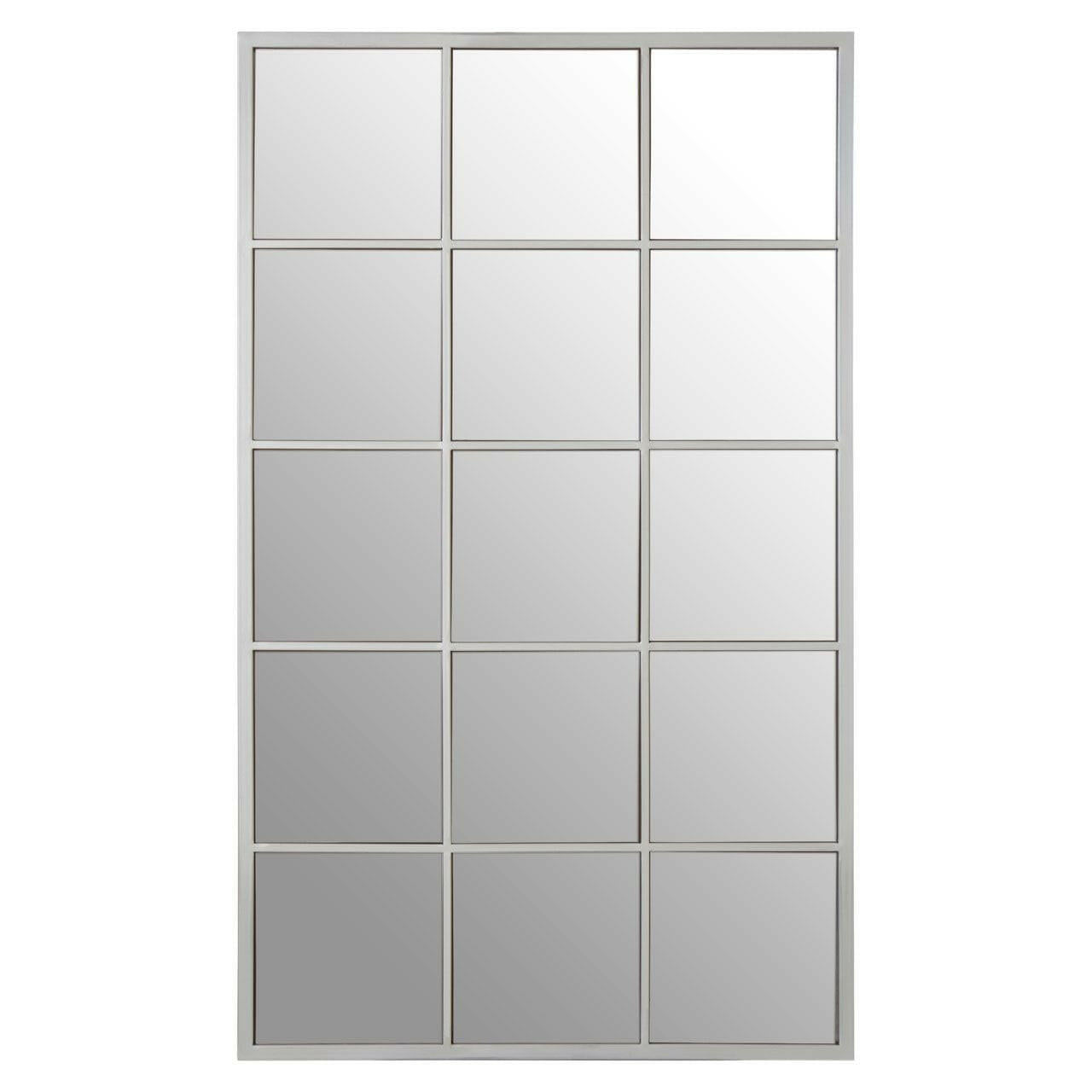 The timeless design of this mirror exhibits a sleek profile and blends easily to eclectic styles. The reflective mirror is accented by a geometric-inspired overlay and encased neatly in a silver finish metal frame.