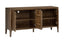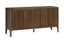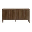 Four door brown sideboard, oak and oak veneer, visible grain with ribbed design at front. Removable shelving. 160W x 45D x 80H cm; 58kg Please see attached care instructions