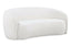 Off-white bouclé fabric upholstered sofa with curved lines. 204W x 104D x 78H cm; net weight 70.5kg