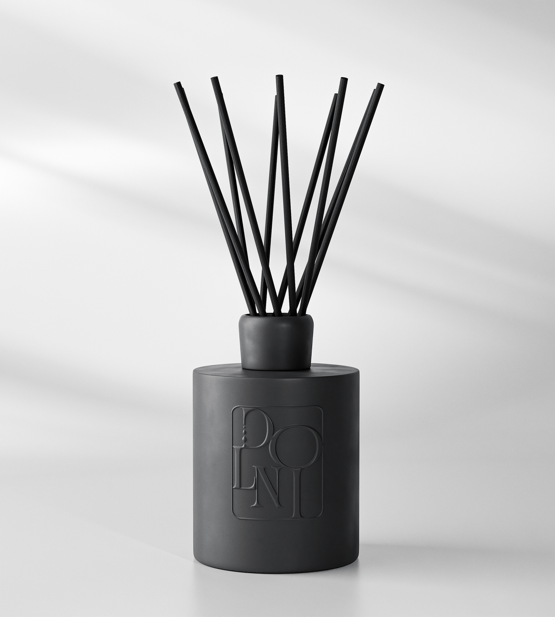 Encased in a sleek matte black ceramic vessel, the Dolni diffuser makes a bold style statement while delivering an unforgettable fragrance journey. Rodí Noir opens with vibrant top notes of juicy pomegranate and tart raspberry, offering a bright burst of fruity sweetness. At its heart, delicate rose and soft jasmine create a romantic floral warmth, subtly uplifted by a refreshing undertone of mint.