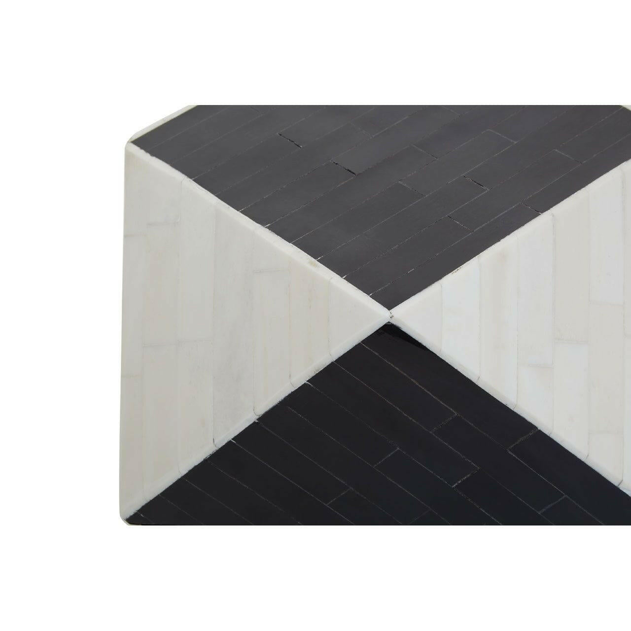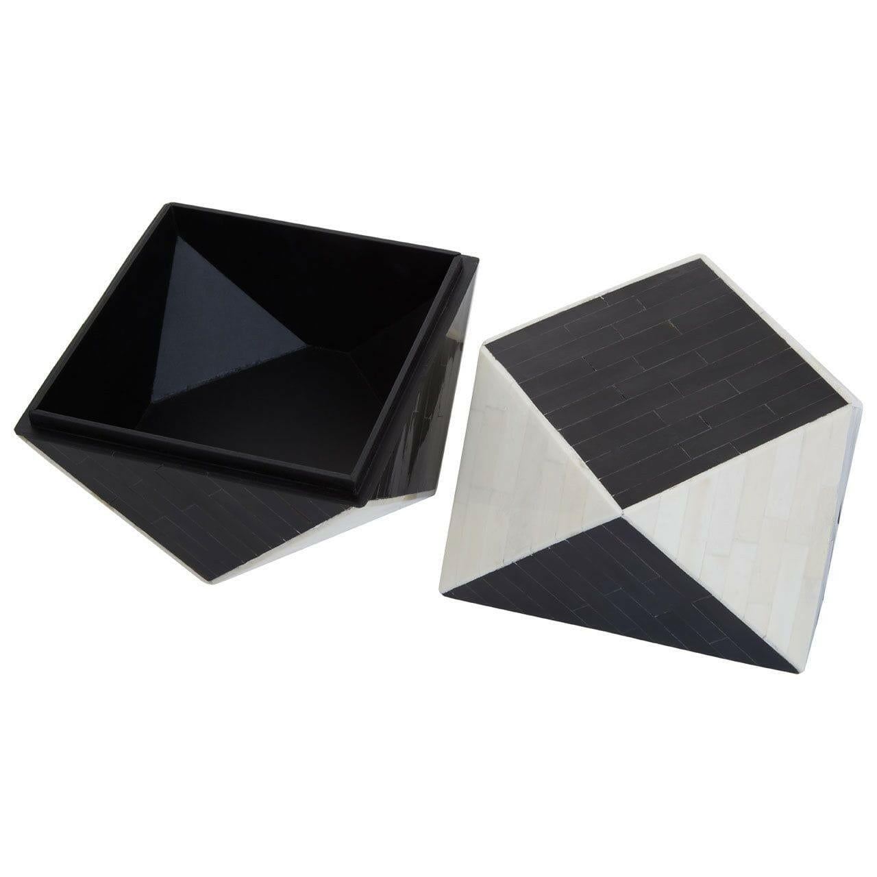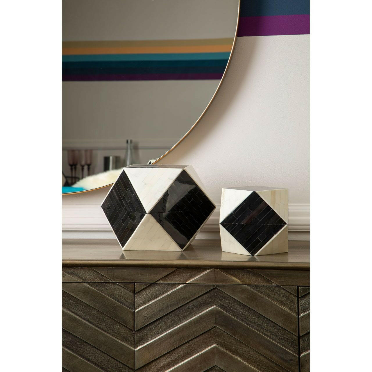 This large multifaceted trinket box is crafted from premium quality MDF with a fusion of bone and horn inlay. Exhibiting a diamond shape in a monochrome finish, this storage box is ideal for accessorising a bohemian-inspired space.