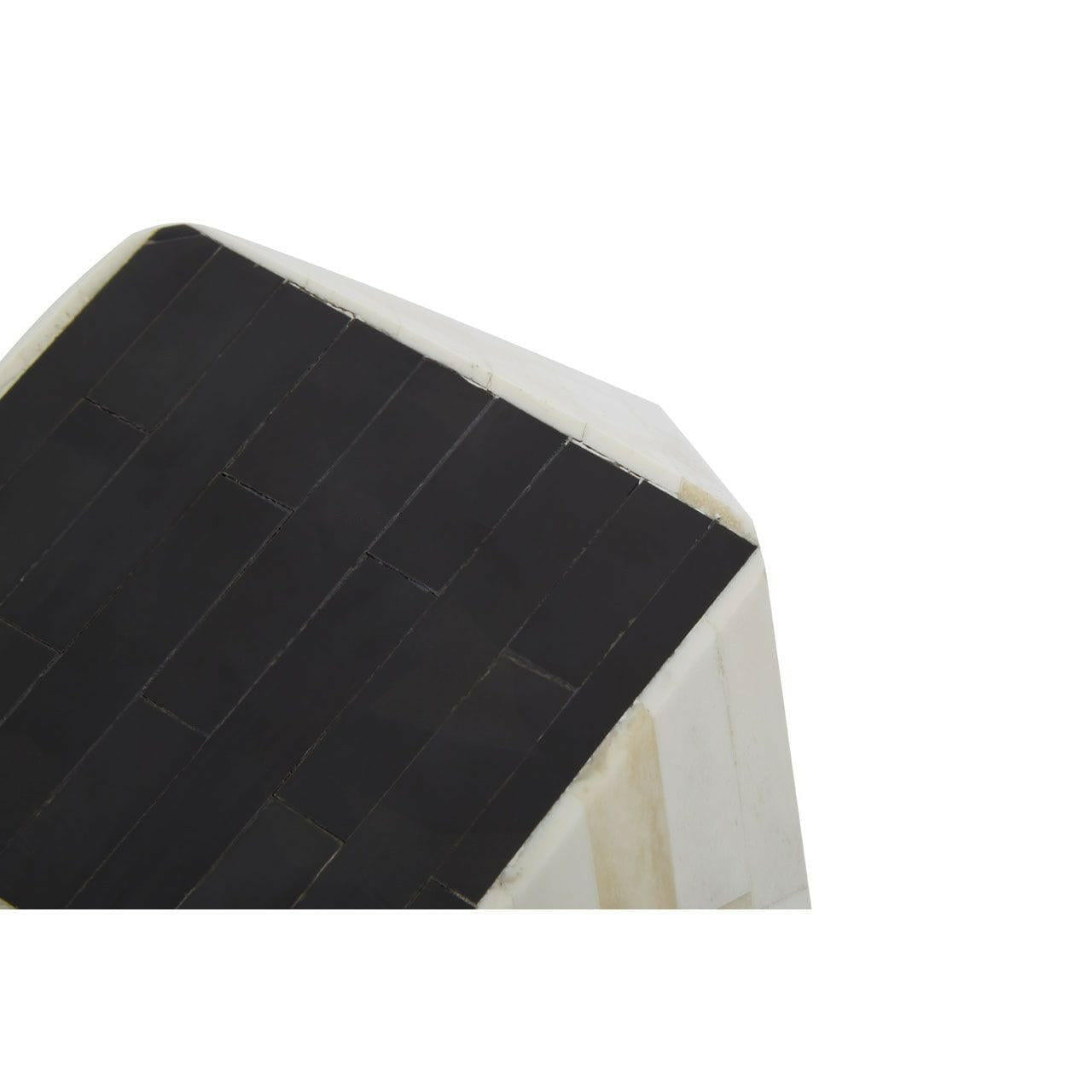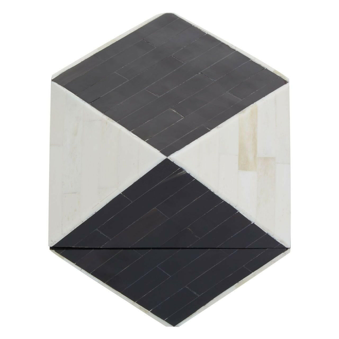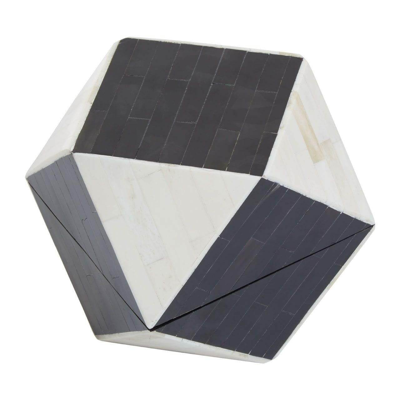 This small multifaceted trinket box is crafted from premium quality MDF with a fusion of bone and horn inlay. Exhibiting a diamond shape in a monochrome finish, this storage box is ideal for accessorising a bohemian-inspired space.