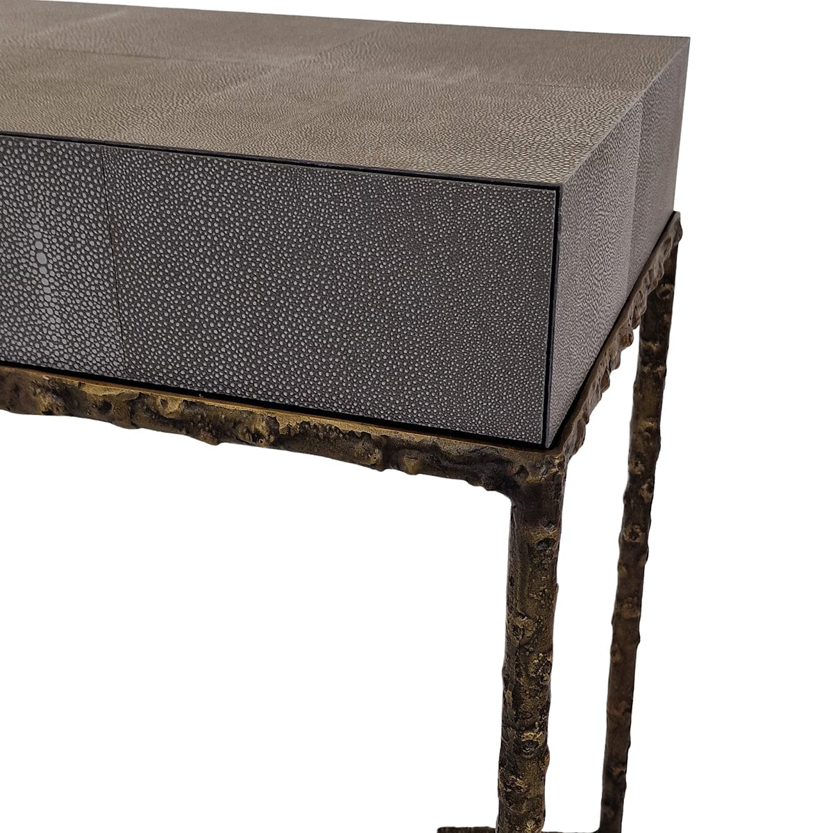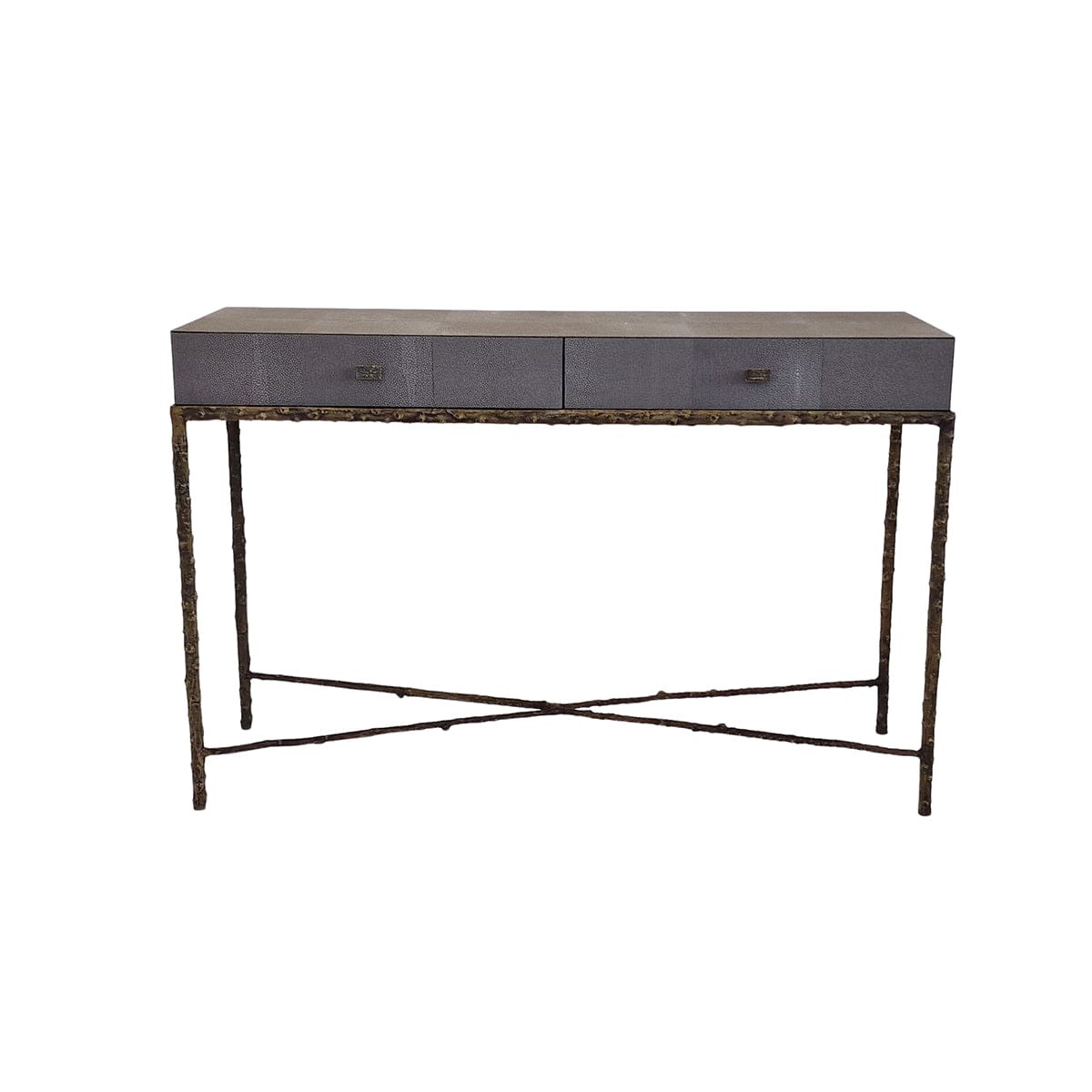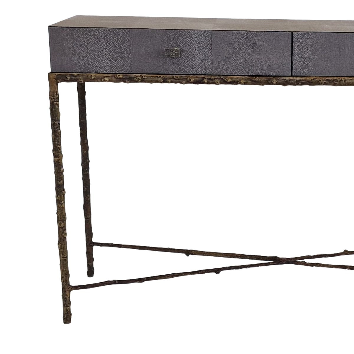Arun Console 2 Drawers Grey Shagreen Leather