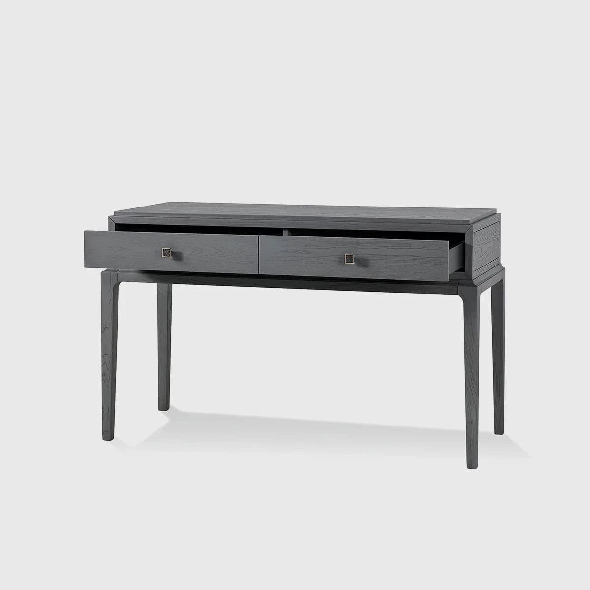 Its sleek surface provides ample space for writing, working, or organising essentials, ensuring a practical and comfortable setup for productivity. The desk features thoughtful details that enhance both form and function. Discreet storage solutions, such as soft-close drawers, keep your workspace clutter-free while maintaining the desk's streamlined look. The metallic handles and smooth hardware add a subtle touch of luxury, elevating its overall design.