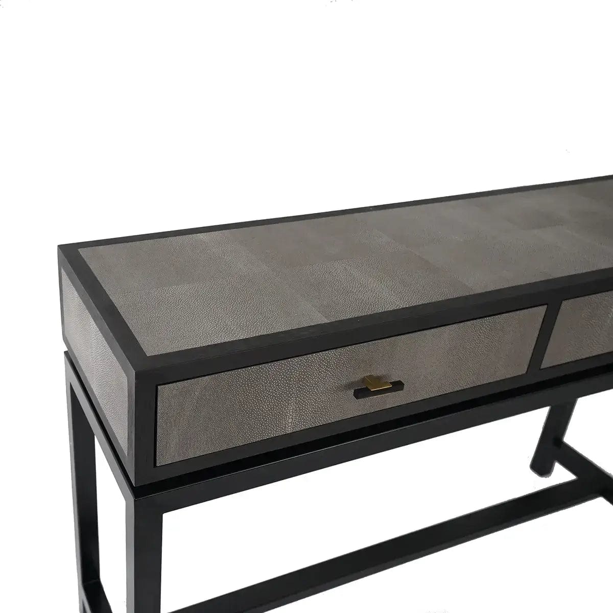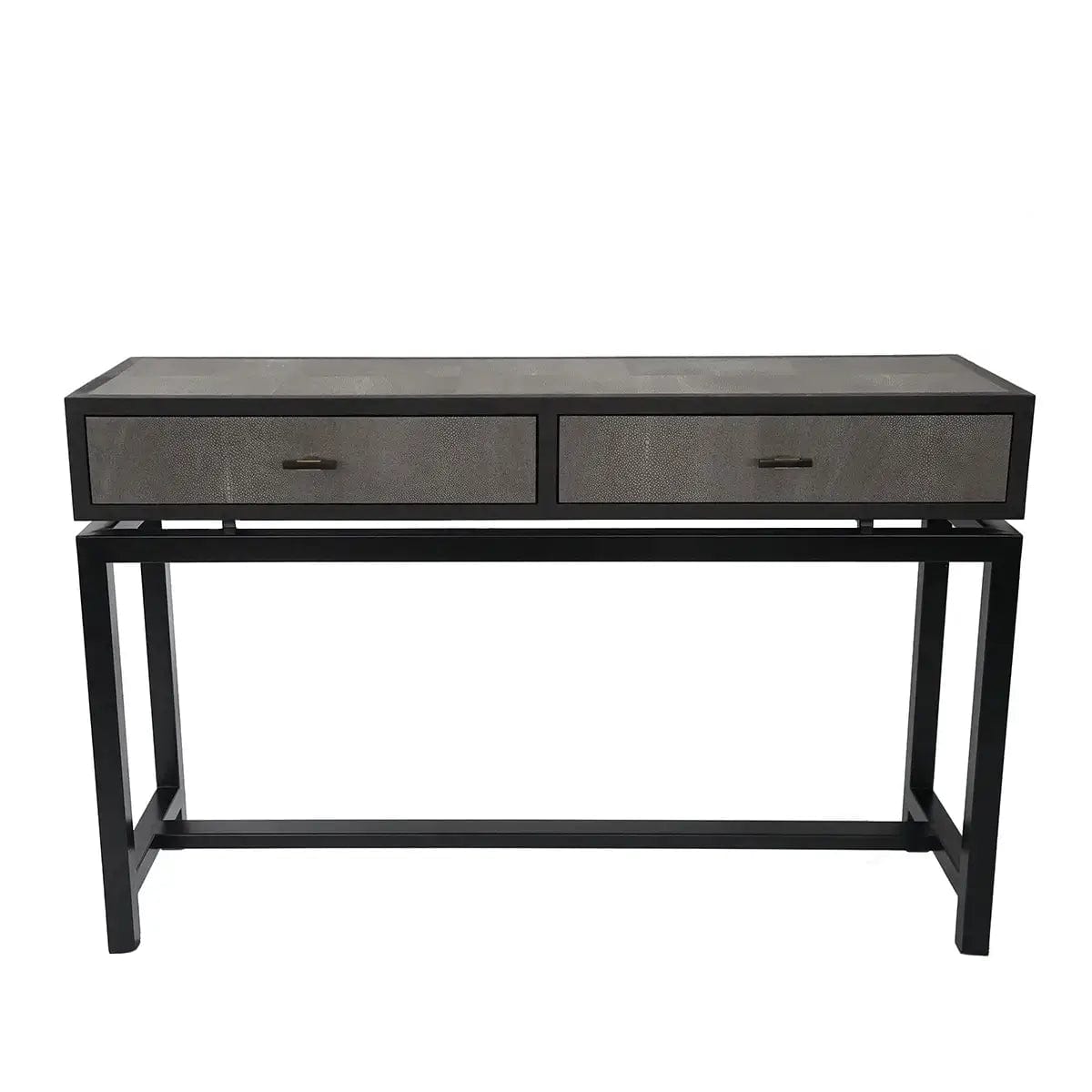 Bertie Console 2 Drawer Grey Shagreen Leather