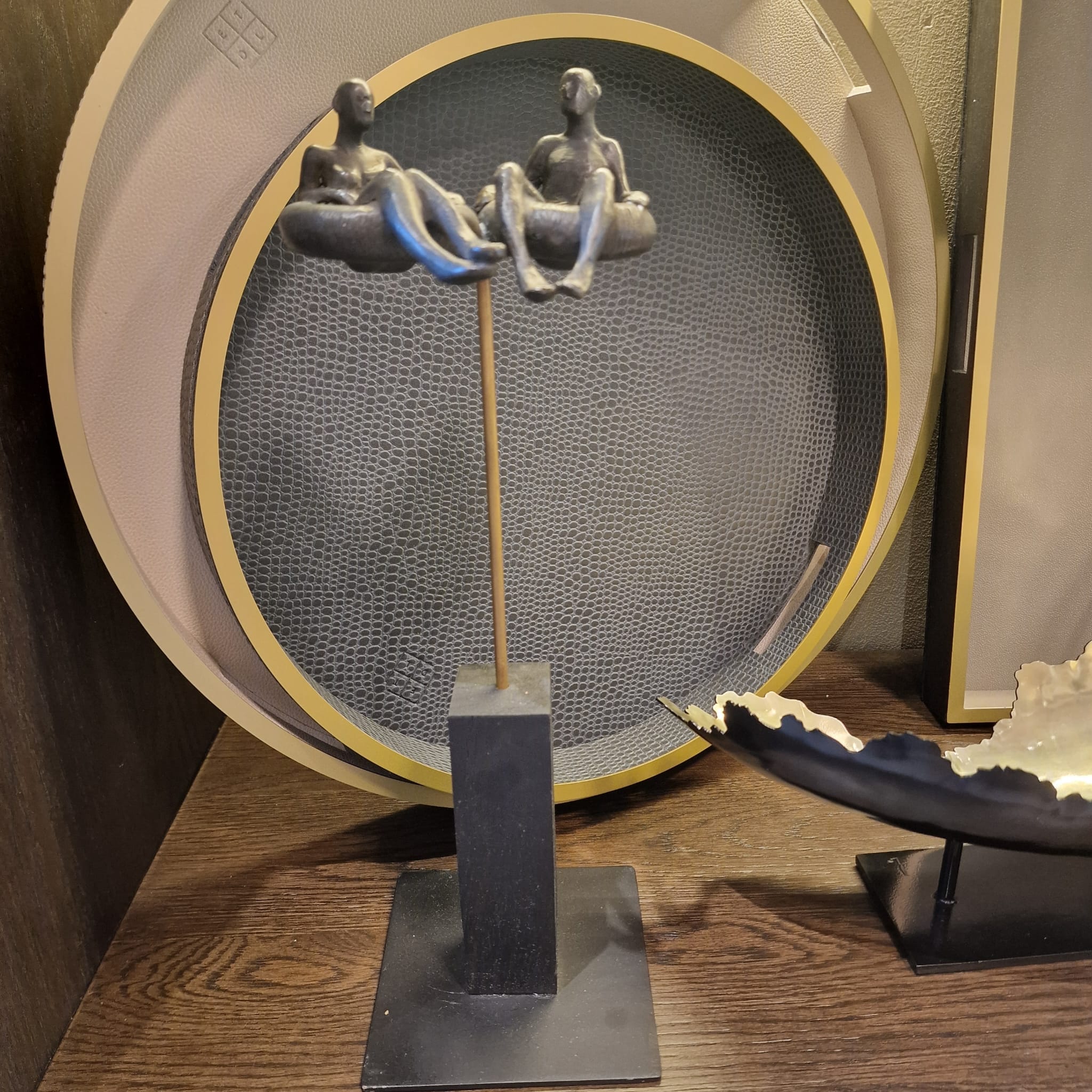Introducing the Figure Sitting on Ring, a one-of-a-kind sculpture that will add a touch of charm and positivity to any space. This unique piece embodies the spirit of rescue and support, beautifully captured in intricate details.