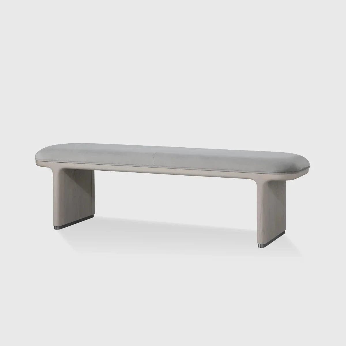Supporting this elegant piece is a sleek metal base that complements the overall aesthetic with a touch of contemporary flair. The base ensures stability and adds a subtle industrial edge, balancing the softness of the upholstered seat and the natural tones of the wood. The Monroe Bench is versatile and adaptable, making it an excellent choice for various settings. Use it as a statement piece at the foot of a bed, as additional seating in a living space, or even as a stylish accent in an entryway. Its compact design allows it to fit seamlessly into both large and small spaces while maintaining its distinct charm.