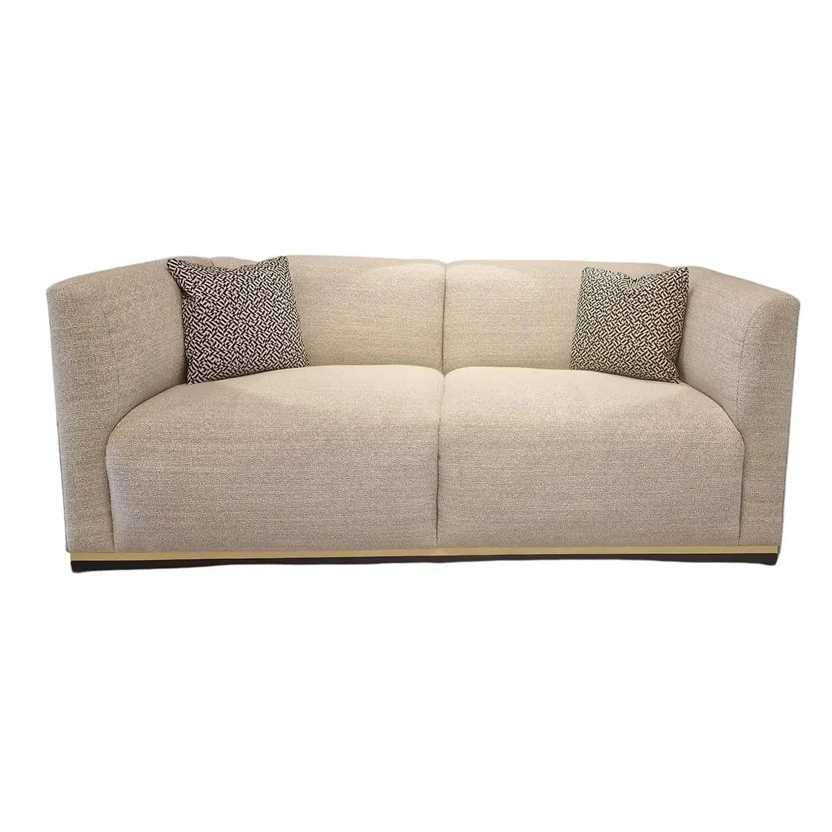 The Newport Sofa boasts an elegant and cosy structure, featuring fixed seats and backs crafted from foam and feather for ultimate comfort. The exquisite addition of laminated brass details on the plinth, paired with a sophisticated black wood finish, elevates the sofa's aesthetic, making it a focal point in any room. Its design harmonizes contemporary simplicity with luxurious appeal, ideal for those seeking to add a touch of sophistication to their living space.