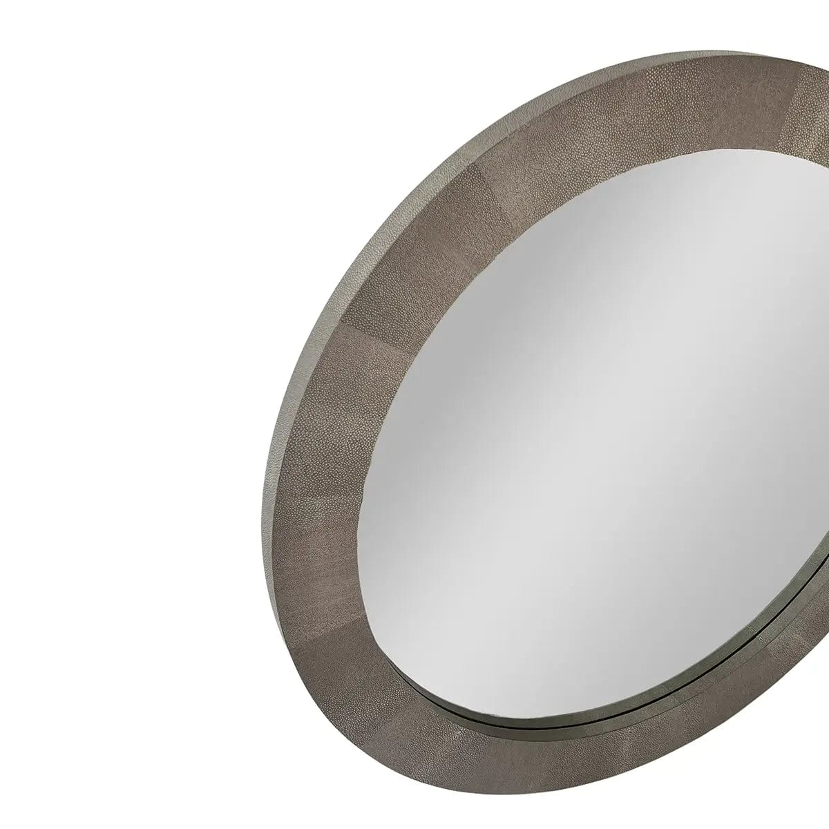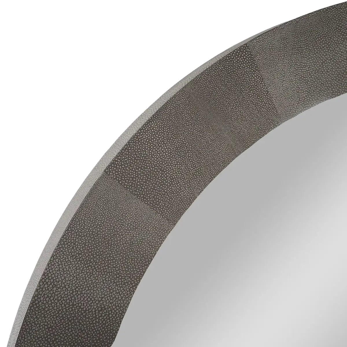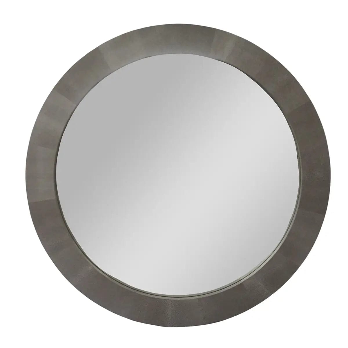 Round Mirror Grey Shagreen Leather