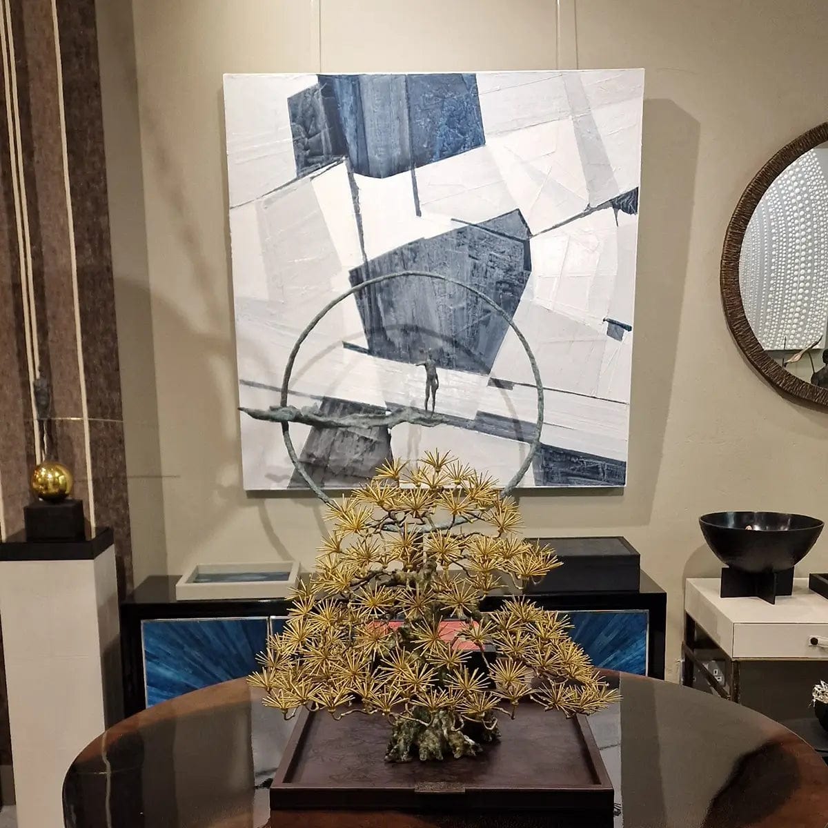 The Torn Shapes Blue is a truly unique piece that stands out in the exceptional collection of original paintings and sculptures offered by House of Isabella UK. With its bold aesthetic and striking detail, this key piece is the perfect finishing touch for any bespoke interior project. Measuring 120 x 120 cm, it is sure to make a statement in any room.