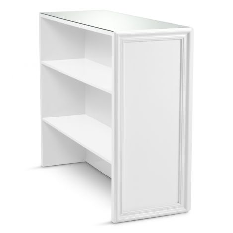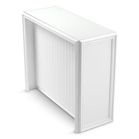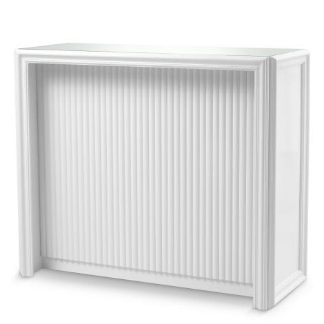 Immerse yourself in contemporary elegance with the Roland bar in semi-gloss white. This stunning piece showcases a refined ribbon panel front and a pristine glass top, merging clean lines with luxurious materials. Perfect for the discerning taste, its sleek design and subtle sheen elevate any sophisticated setting with a touch of modern allure.