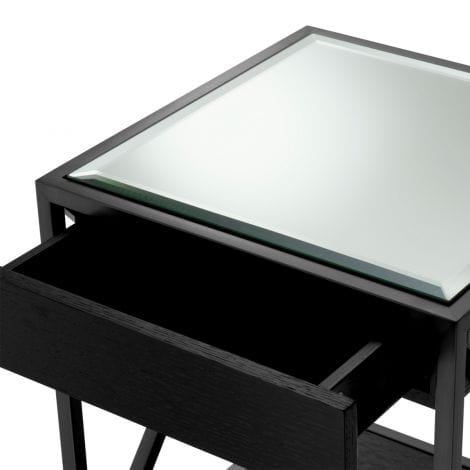Bestow a little Hollywood glamour on your home with the Beverly Hills Nightstand. This stunning piece has a sleek bronze finish frame with two criss-cross side panels that features a shelving space and storage drawer in oak veneer.
