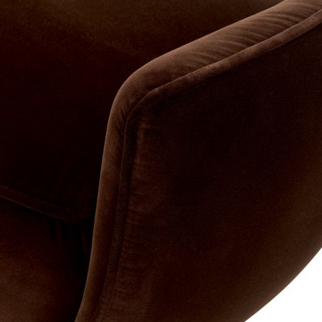 The Bench Stirling in sonoma brown velvet features a plush, soft fabric paired with sleek black legs, combining comfort with refined style. Its warm brown tones and smooth texture add a sophisticated touch, making it an elegant and durable seating option.