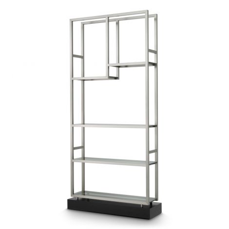 Sculpted sophistication emerges with the Cabinet Corrado I, where a brushed steel finish meets smoke glass intricacies. This elegant black veneer base provides a touch of grandeur, seamlessly merging modernity with timeless elegance. Elevate your surroundings with a piece that embodies refined taste and extraordinary elegance, perfect for the discerning connoisseur.