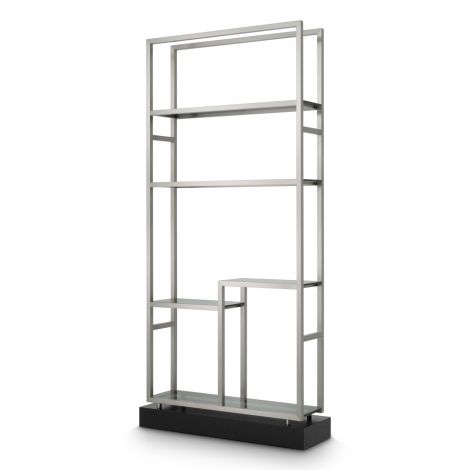Unveil sophistication with Cabinet Corrado II, showcasing a stunning brushed steel finish complemented by smoke glass elements. Anchored by a refined black veneer base, this piece elevates any space with its modern allure. Perfect for discerning tastes, the cabinet exudes an understated elegance, blending contemporary design with luxurious materials.