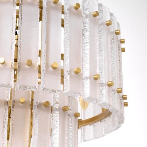With a stunning 2-layer design, Chandelier Blason offers a striking look for both classic and contemporary interiors. This antique brass finish chandelier, embellished with thick frosted glass plates, captures and reflects light, providing a shimmering textured effect that is perfect for hallways, living areas and bedrooms. The fixture is suspended from a chain that is adjustable in height.