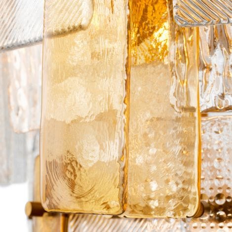 Radiate sophistication with the Chandelier Cassiano, a stunning fusion of four textured glass styles. Its unique forms pair effortlessly with an antique brass finish, creating a visual symphony that captivates and enchants. Elevate your interiors with this luminous centerpiece, designed for those who appreciate the art of high-end elegance.