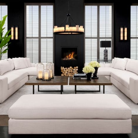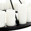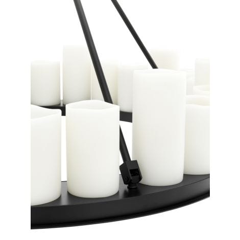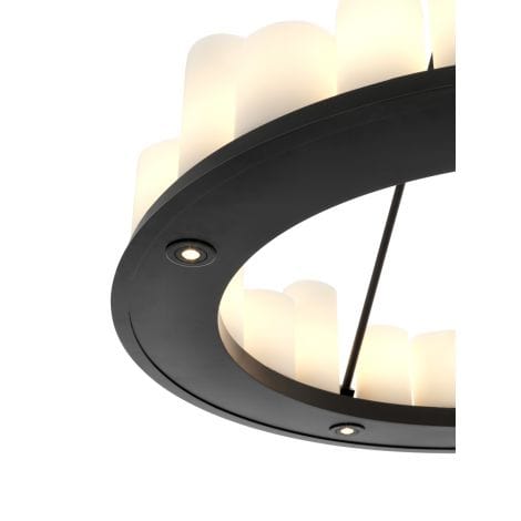 The robust black finished frame of the Commodore Chandelier is supported by a strong chain link ceiling canopy. It features a plate with 24 tapered faux pillar candles which suggest the authentic formation of melting wax. The bottom of the plate features 4 recessed LED downlights. The lights in this chandelier can be turned on and off by using the included remote control. Several different settings are possible. This chandelier is not dimmable and cannot be used with a dimmer. Create a warm and welcoming ambience with the Commodore Chandeliers. Combining the soft glow of candlelight with gothic appeal and industrial modernity, these distinctive chandeliers will make a radiant addition to your interior scheme.