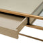Pairing Bauhaus style with a Mid-Century Modern look, the Napa Valley Desk showcases a sleek frame with brushed brass finish, a clear glass top and a drawer of woven washed oak veneer.