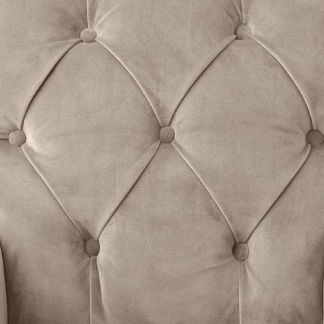 Wrapped in luxurious Savona greige velvet, the Atena Dining Chair with arms exudes softness and seating comfort. With a classic button back, a comfy padded upholstery and black legs, this chair is built for high-style interiors. A versatile and elegant addition to your residence, equally at home in a contemporary dining space as in a traditional setting.