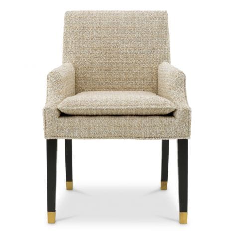 The Met x Eichholtz presents the Dining Chair Clayton, a sophisticated addition to the acclaimed Clayton series, now reimagined in refined Winslow chenille beige fabric. This elegant dining chair pairs timeless comfort with modern tailoring. The soft chenille fabric offers a tactile richness, while the chair's fluid silhouette and generous proportions invite long, leisurely meals. Whether placed around a grand dining table or styled individually, the Dining Chair Clayton effortlessly combines understated luxury with architectural presence. HISTORIC PROVENANCE A natural continuation of the Metropolitan Collection, this piece draws from the elegance of The Metropolitan Museum of Art. The clean lines and inviting textures echo the grandeur and cultural richness of the Museum.