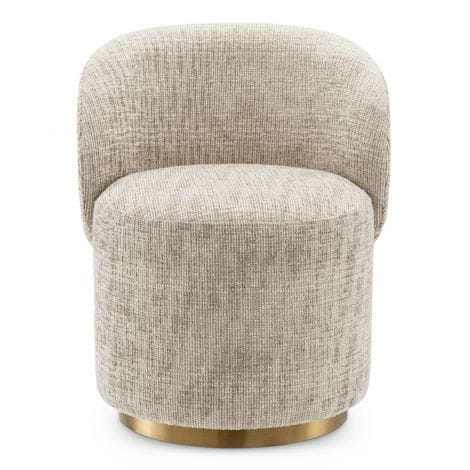 Indulge in comfort with the Dining Chair Greer in Creststone beige, featuring a plush fabric blend and a versatile swivel base. Its sleek silhouette is elegantly grounded by a brushed brass finish, exuding sophistication. Ideal for those who desire luxury and refined elegance in their dining space.