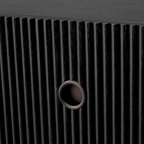 Unveil sophistication with the Drawer Chest Dimitrios in charcoal grey oak veneer. Featuring elegant ribbed wood panels and burnished bronze accents, this piece transcends modern luxury. The refined finish offers an aesthetic feast for the discerning eye, effortlessly enhancing any opulent environment. An epitome of style for those who appreciate truly high-end furniture designs.