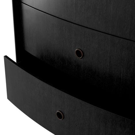 Revel in the refined allure of the Splendora Drawer Dresser, crafted in charcoal grey oak veneer with a bronze finish that deepens its sophisticated charm. Its oval-shaped details introduce a subtle curve to the design, while the sleek silhouette radiates understated elegance for the discerning luxury connoisseur.