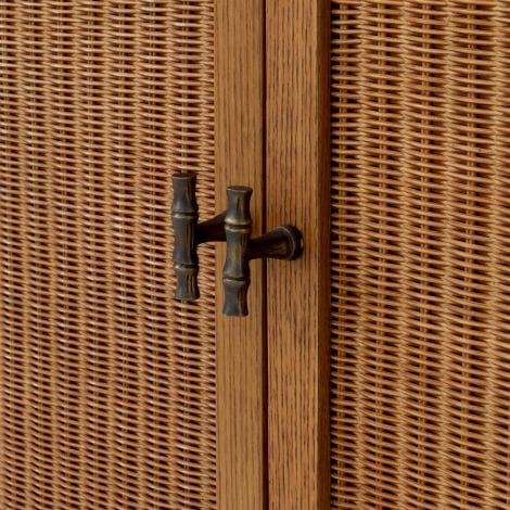 Envision elegance with the Dresser Borchard, adorned in caramel oak veneer and intricate rattan paneling. This refined piece captures timeless beauty and sophistication, creating an ambiance of luxury in any setting. Its warm hues and textural contrasts make it a distinguished choice for those who appreciate the finer details in high-end furniture.