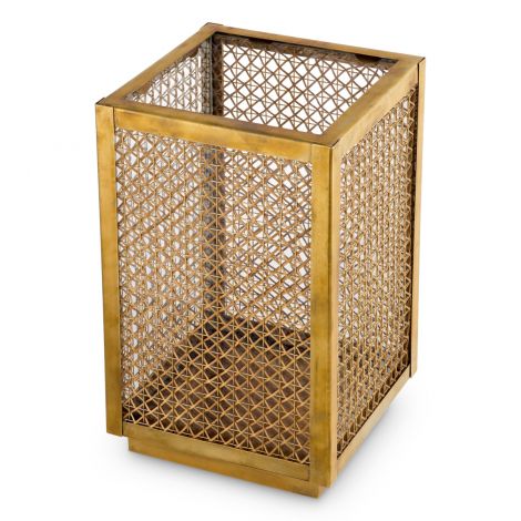 Revel in the refined allure of the Hurricane Cairo S, where vintage brass elegance meets the textured beauty of rattan weave on its sides. This luxurious fusion of warm metallic hues and natural fibers offers a sophisticated tactile contrast, embodying timeless charm.