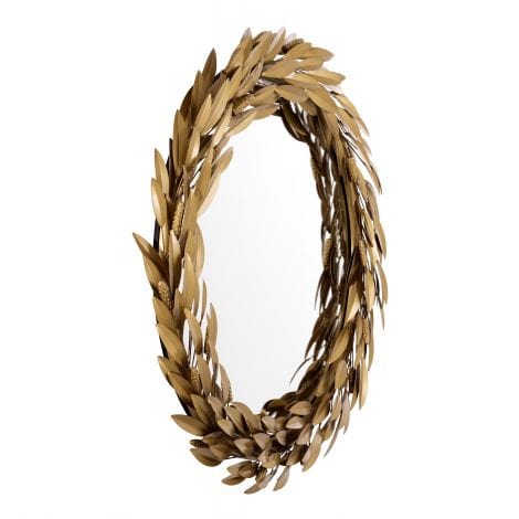 Give any room special flair with the Bonheur Mirror that impresses with its refined appearance. Display this luxury round mirror in your living room or hallway, where its elegantly designed frame with overlapping leaves in antique gold finish adds texture to the wall.