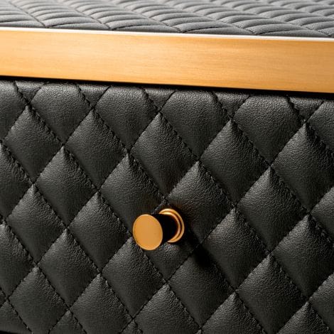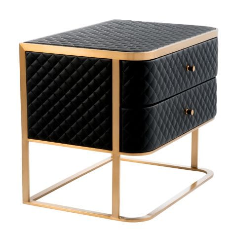 With its seductive curves and vintage look, the 2-drawer Monfort Nightstand is a must-have in your bedroom. The diamond quilted black faux leather upholstery perfectly complements the sleek metal frame with brushed brass finish.