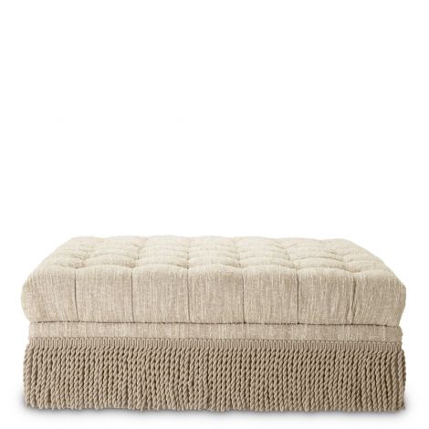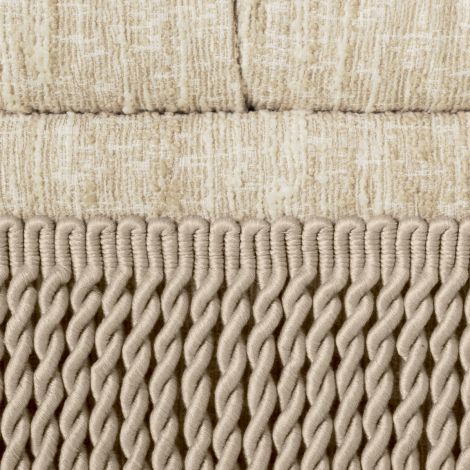 The Dorantes Ottoman is a charming and elegant piece that adds a touch of luxury to any living space. Upholstered in the exquisite Boucle Sonata Cream fabric, this ottoman features stylish fringes that enhance its visual appeal. The ottoman's cushioned top provides a comfortable seating or lounging experience. Embrace both style and comfort with the versatile Dorantes Ottoman.