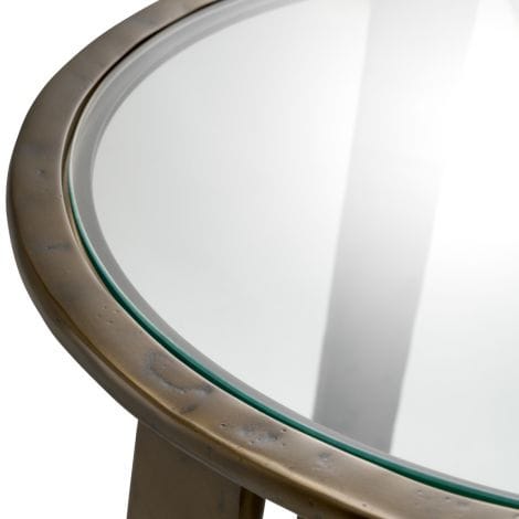 Elevate your interior with the Cambronne Side Table, where elegance meets artistry. The hammered cast aluminum base, cloaked in a luxurious bronze finish, pairs exquisitely with a pristine clear glass top. This piece is an artful blend of refined texture and timeless design, making it a quintessential addition to any discerning luxury space.