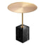 Side Table Cole is all about simplicity and natural appeal. The round brushed brass table top is embellished with raised edges. It sits on a sleek stem which firmly rests on a block of black marble with white veins, giving it a chic and elegant look.