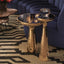 The organic shaped low Lindos Side Table takes style cues from mid-20th-century Scandinavian design furniture. This stunning round end table features a stainless steel base in gold finish and a black glass tabletop.