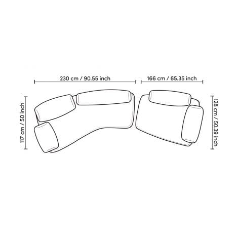 Dimensions: S: W. 65.35" | D. 50.39" | H. 28.74" | SD. 35.43" | SH. 15.75" | AH. 27.56"