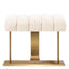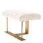 Bring a modern touch to your bedroom or living room arrangement with the McGuire Stool. This stylish stool offers an extra seat with a unique design. The brushed brass finish frame has one leg on one side and two on the other, supporting a seat that is covered in a rich Bouclé cream fabric and provided with channel stitching.