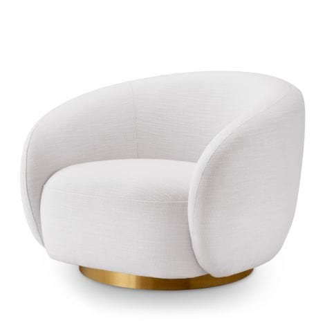 Swivel and relax to your heart’s content in Chair Brice, an ideal addition to your living space. Cosy and contemporary, this elegantly curved swivel chair features a stylish Avalon white upholstery and a brushed brass swivel base.