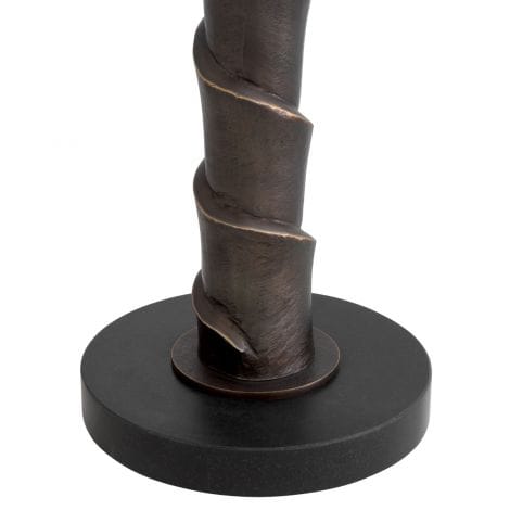 Eichholtz presents the stylized Riverbank Table Lamp, perfect for the contemporary living space craving a touch of elegance. This exquisite fixture boasts a rich bronze highlight finish and an artisan-crafted metal body, completed with a shade that offers a warm illumination with its golden lining.