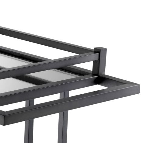 Bestow a little Hollywood glamour on your home with the Beverly Hills Trolley. Decorated with a handle and castors for a chic bar cart look, this stunning side table comprises a sleek stainless steel frame with bronze finish and shelves of bevelled mirror glass.
